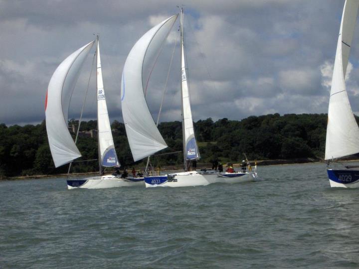 The Regatta is sailed on matched 42 ft Beneteau F40s, in the Solent, off the south coast of England. The weather was wet.