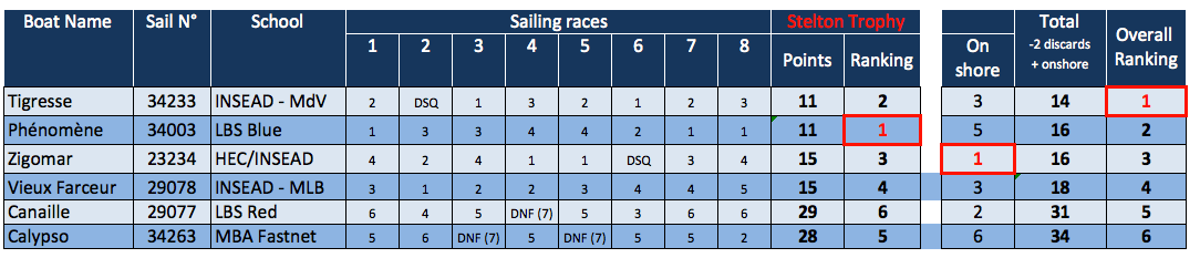 Winning the on- shore games with an impressive knowledge of wine tasting and art history, third place in the regatta went to the HEC/ INSEAD team, skippered by Philippe Lerique.